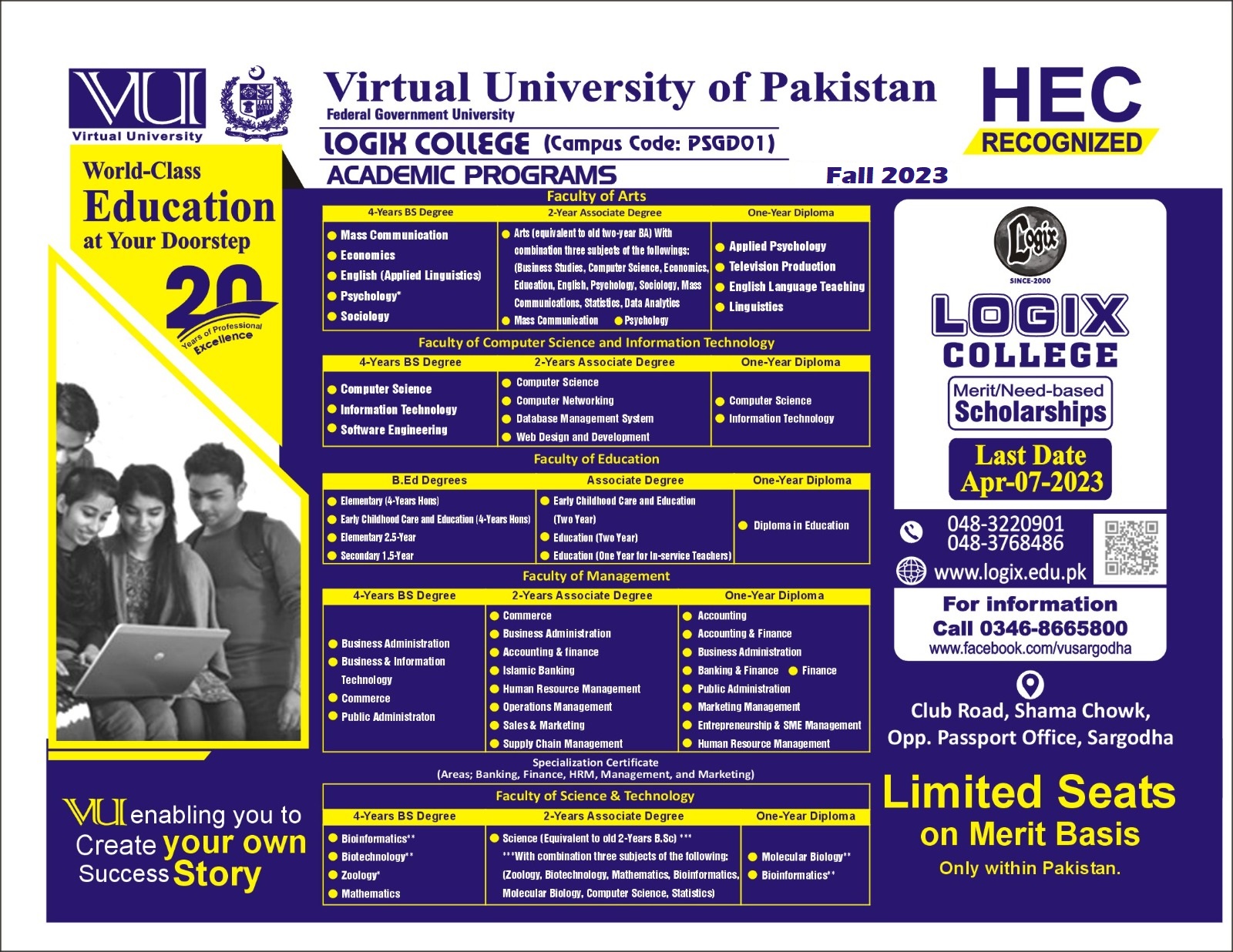 Virtual University of Pakistan (VU) Programs | Admission Open Fall 2023 | Jul 19, 2019 |