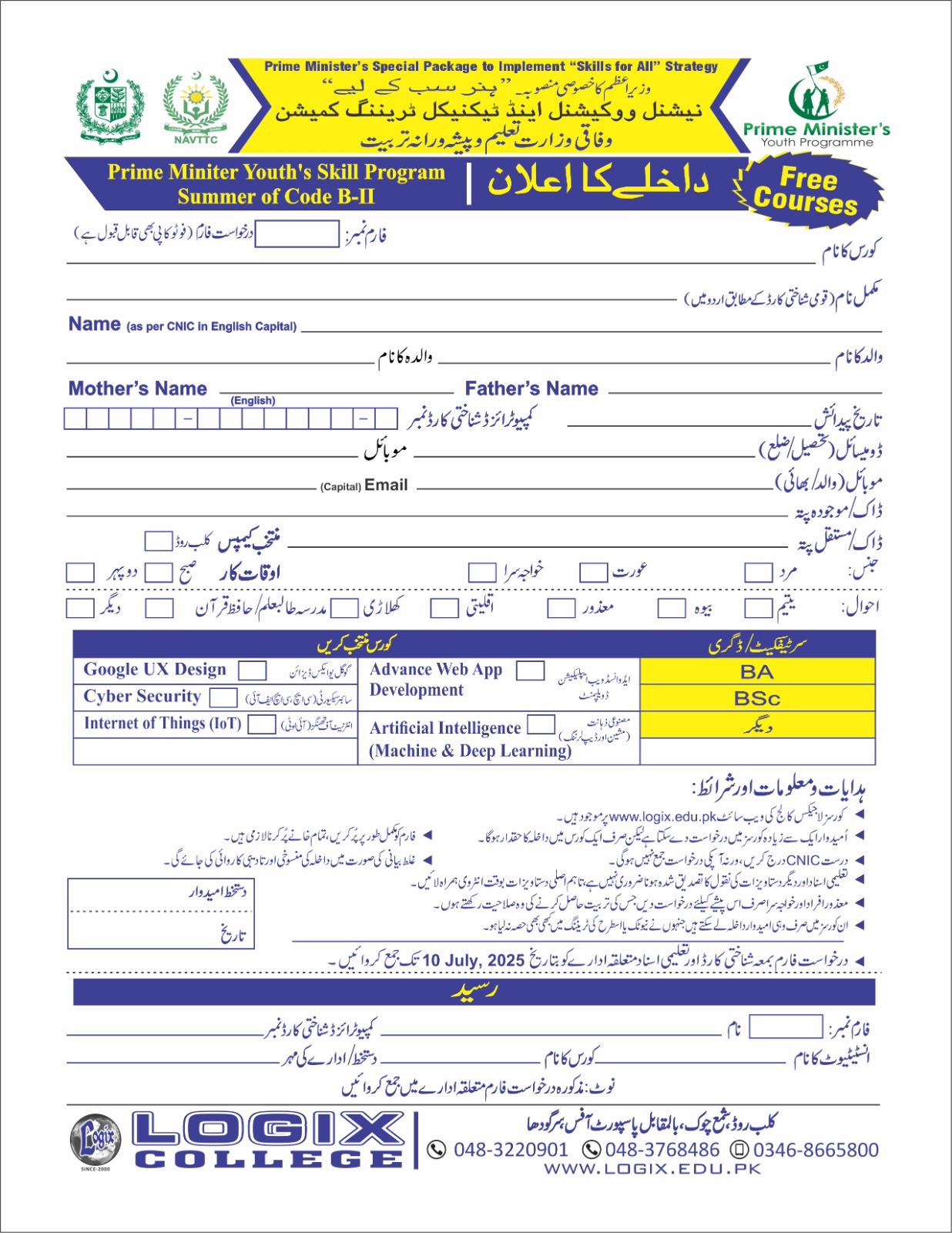 Govt Free Course (Navttc Summer of Code B-II) | Admission form (Summer of Code B-II) | Dec 19, 2023 |
